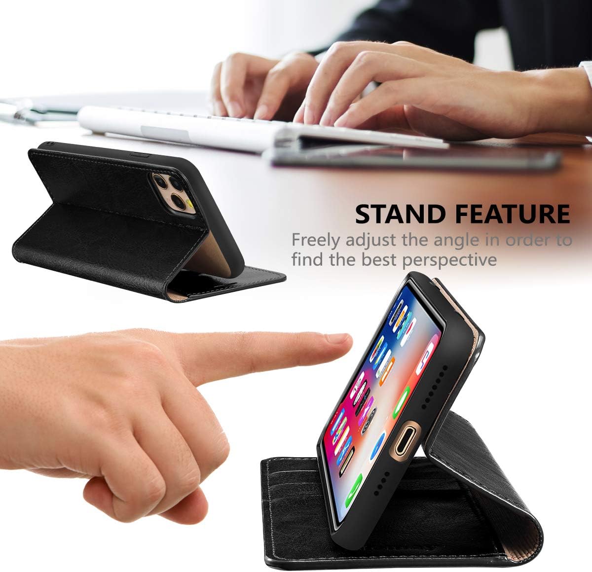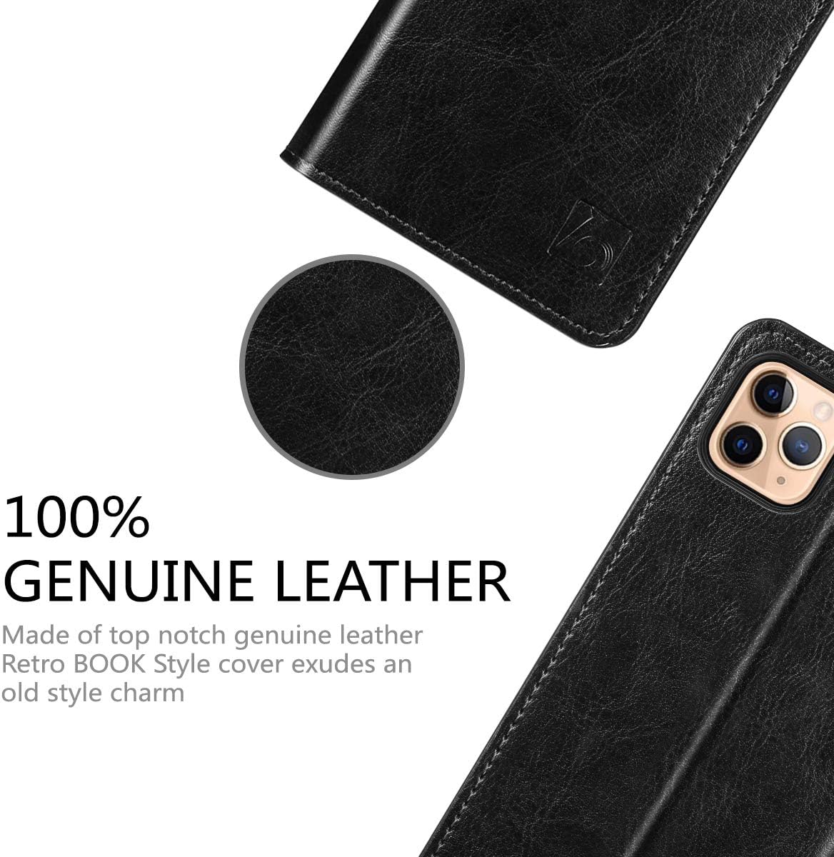 Belemay Compatible with iPhone 11 Pro Max Case Wallet, Durable Genuine Leather, RFID Blocking Card Holders, Shockproof TPU Shell, Kickstand, Drop Protection, Protective Flip Cover