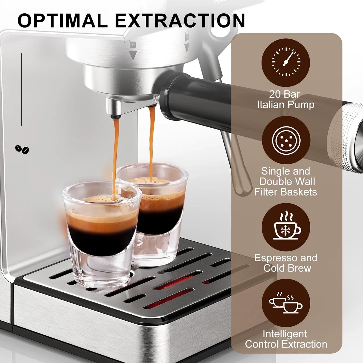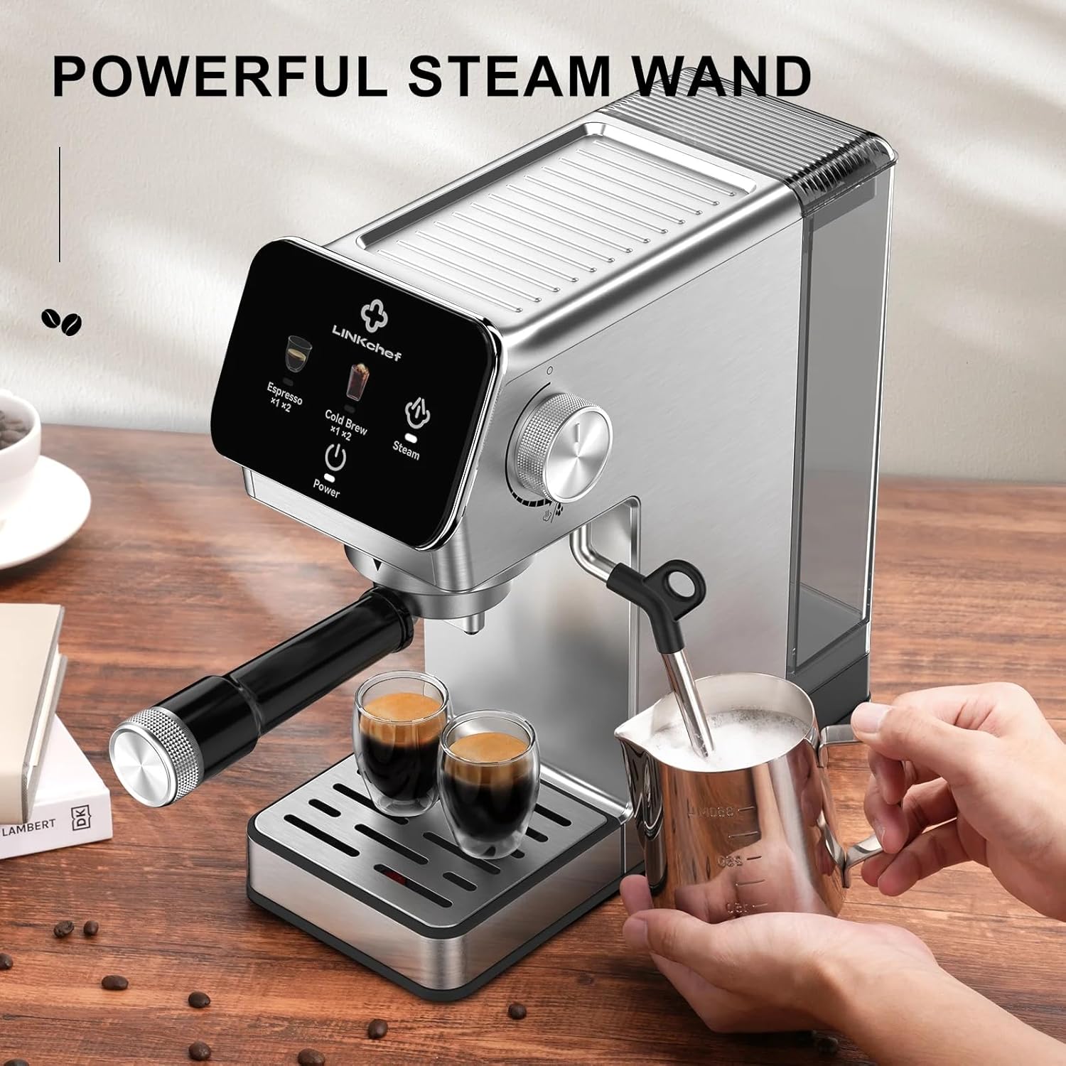 Perfect Espresso at Home - Experience perfection with the LINKChef Espresso Machine, featuring an 20 Bar original Italian pump and a powerful 1300W instant thermo-block heating system for the ideal pressure, temperature, and volume to extract espresso flawlessly.